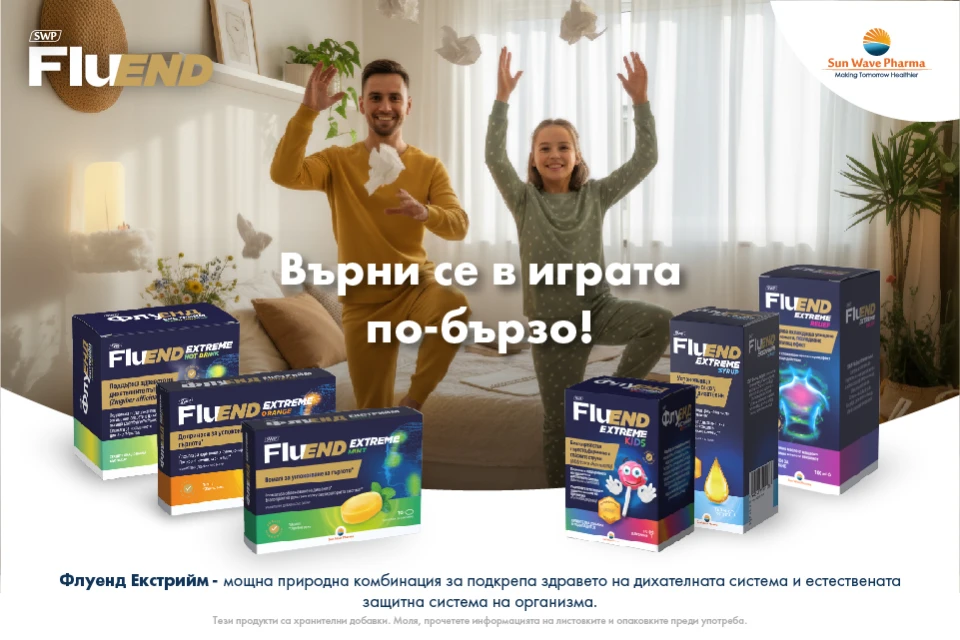Флуенд Екстрийм от Sun Wave Pharma е мощна природна комбинация за подкрепа здравето на дихателната система и естествената защитна система на организма. Имате избор от различни форми, според предпочитанията и нуждите – топла напитка, сироп, близалки, лосион за втриване и таблетки за гърло в два вкуса – мента и портокал.