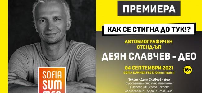 Известният тв водещ Деян Славчев - Део ще покаже за първи път автобиографичното си стенд-ъп шоу в рамките на Sofia Summer Fest на 4 септември от 20:00 часа.